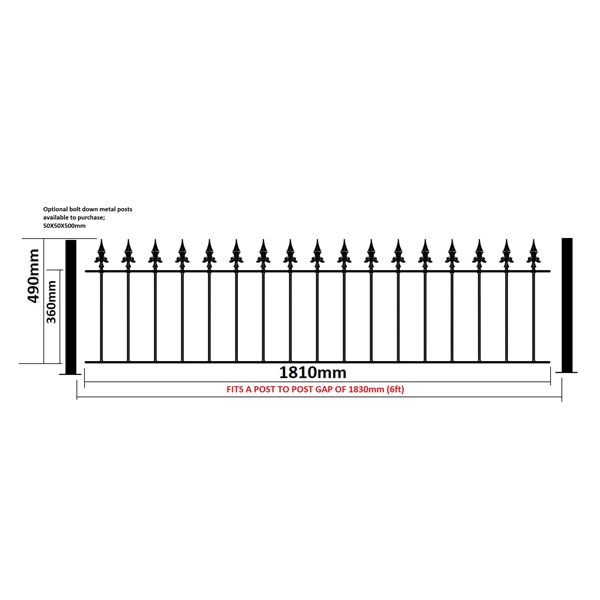 Saxon spear top railings 1830mm (GAP) x 490mm